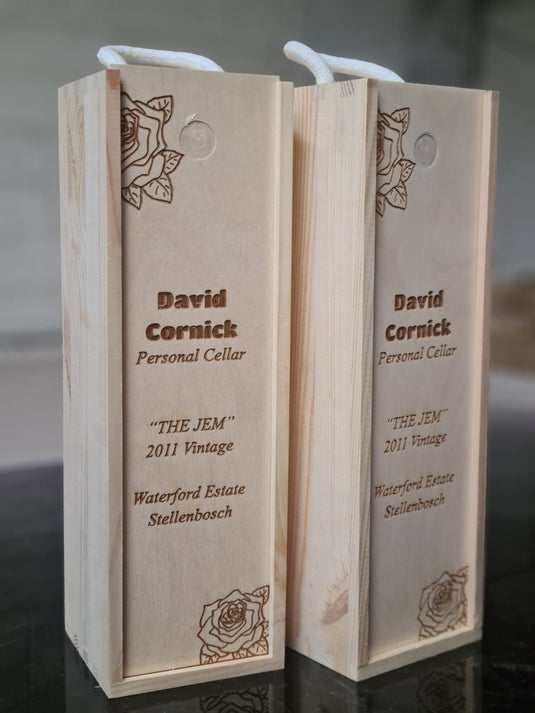 Personalized Laser Branded Bottle Boxes from Custom Wood Designs