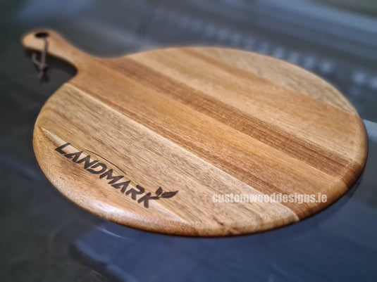 Acacia Wood Serving Board. Measuring a generous 38.5 x 11 cm, each board in this set of 25 is meticulously crafted to perfection. Boasting a handle and robust PU ...