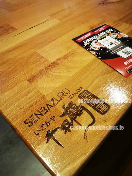 Customization and Versatility: With Custom Wood Designs, the possibilities for table top customization are virtually limitless. From different wood species, finishes and stains to various shapes and sizes, UV prints direct to surface offers full colour options, CNC Carved offers sculpting & engraving or the the favorite laser engraved (Burnt / scorched effect). Businesses can choose from a range of options that perfectly align with their desired aesthetic. Whether it's a rustic, farmhouse-style restaurant or a modern and sleek hotel, Custom Wood Designs can create table tops that seamlessly integrate with the overall theme and atmosphere.