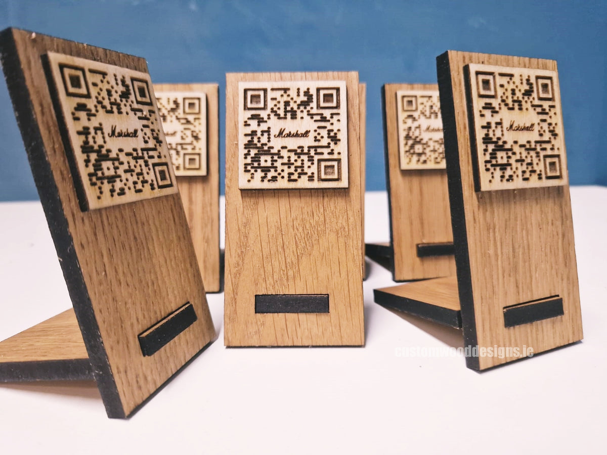 Contact us at 00353 1 2573871 or info@customwooddesigns.ie to order yours today. Elevate your brand with our standout QR Code stand.