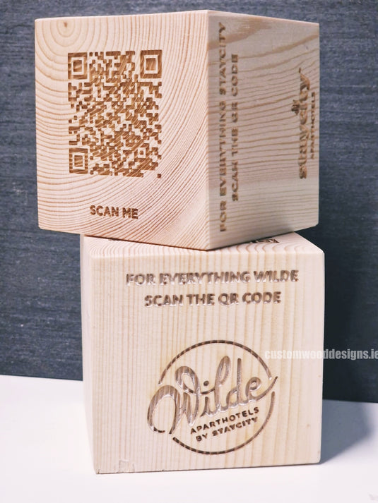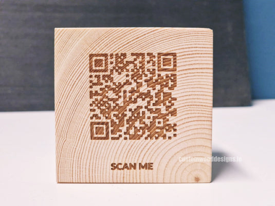 Custom Wood Designs in Dublin, Ireland specializes in manufacturing high-quality wooden products, including square blocks ,free-standing plaques and hanging QR Codes. Our unique offering combines the functionality of QR Codes with the beauty and sustainability of wooden craftsmanship.